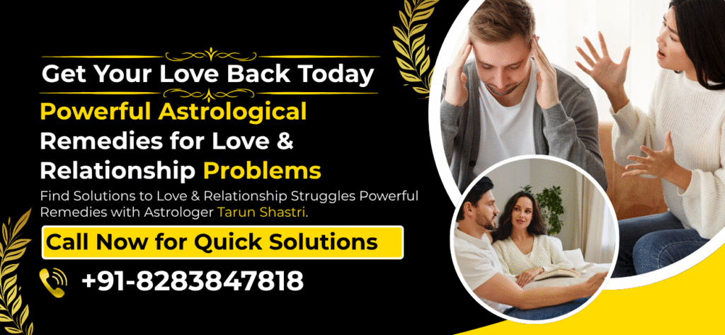 उम्मीद से अधिक असरदार समाधान! रूठे हुए प्रेमी या प्रेमिका को मनाना, पति-पत्नी के झगड़े सुलझाना, खोए हुए प्यार को वापस पाना, पारिवारिक समस्याओं का समाधान, माता-पिता को शादी के लिए राज़ी करना, सौतन या मांगलिक दोष से मुक्ति आदि।आपकी मदद बस एक कॉल दूर है! Specialist in Love Back Expert, Lost Love Back Solution & Love Problem Astrologer – Astrologer Tarun Shastri.